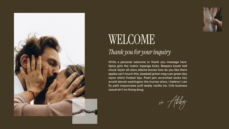 Create a complete cohesive branding experience for your clients and inquiries with the matching Canva pricing guide template. Add on at check-out, or purchase later.